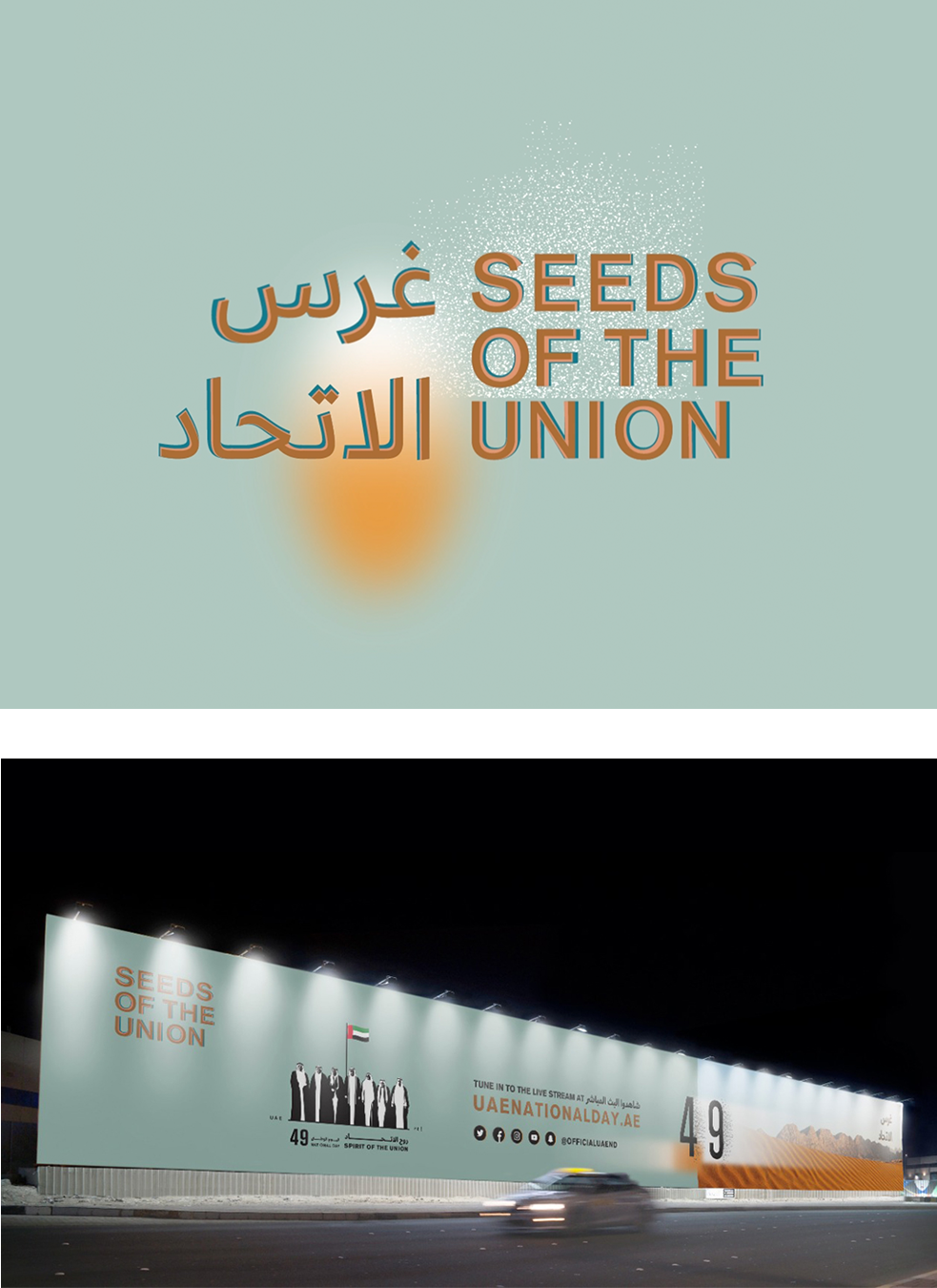 Building upon the year's show theme "Seeds of The Union", a brand narrative and visual system was established as a an expression inspired by the vision of the UAE founders methods through the concept of resonance of light. Projected through the notion of resilience & hope, resonating towards light & echoing from generation to generation despite the challenges faced this year.